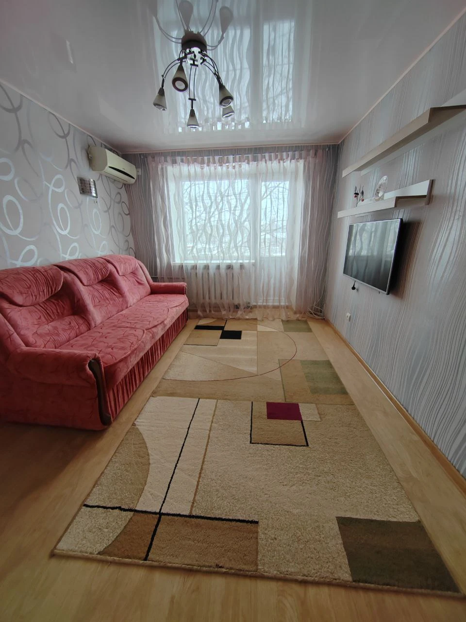 Квартира находится в спальном районе города, вся отделка в очень хорошем состоянии, жили мать с дочерью. Всё что на фото остаётся в квартире: стиральная машина LG, водонагреватель Bosch, микроволновка, телевизор, кондиционер и вся мебель. Квартира теплая, не угловая. Спальня зонирована от зоны отдыха. В комнате отдыха натяжной потолок.
